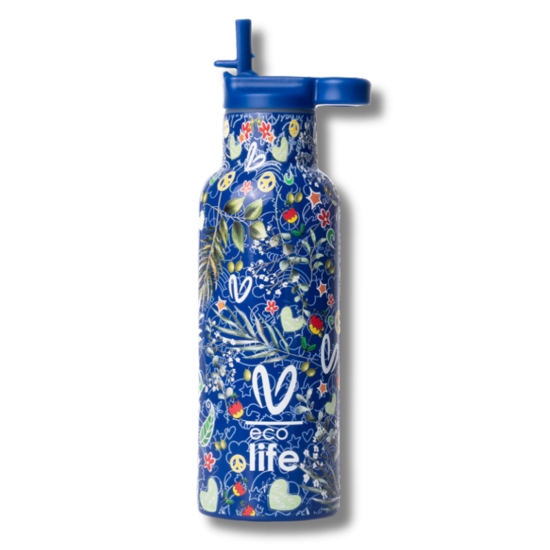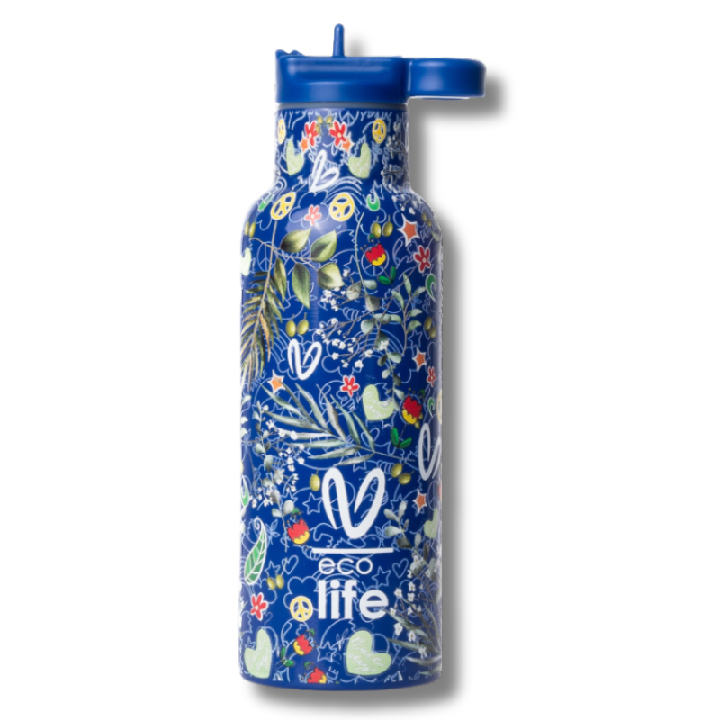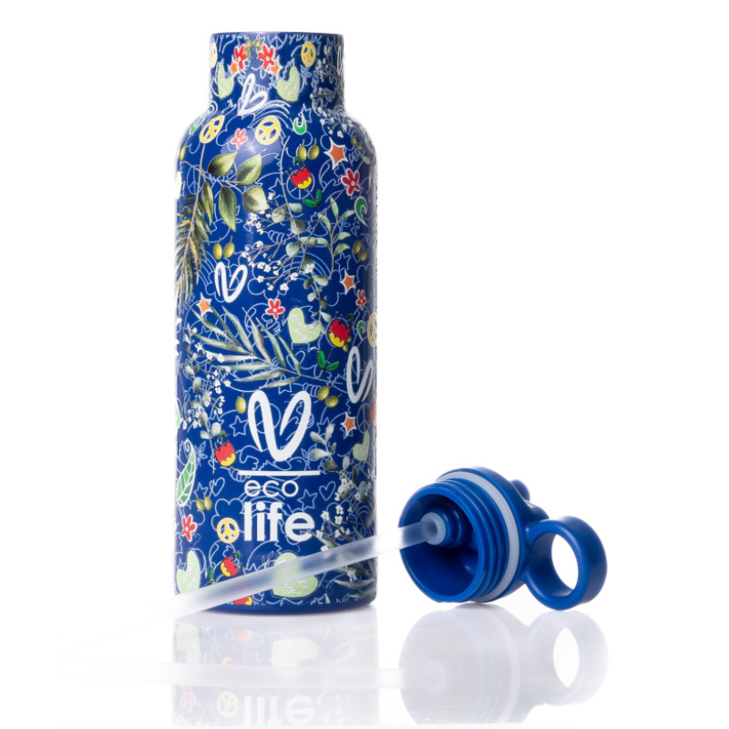Ανοξείδωτο Παγούρι Θερμός με Εσωτερικό Καλαμάκι 500ml Blue - Ecolife